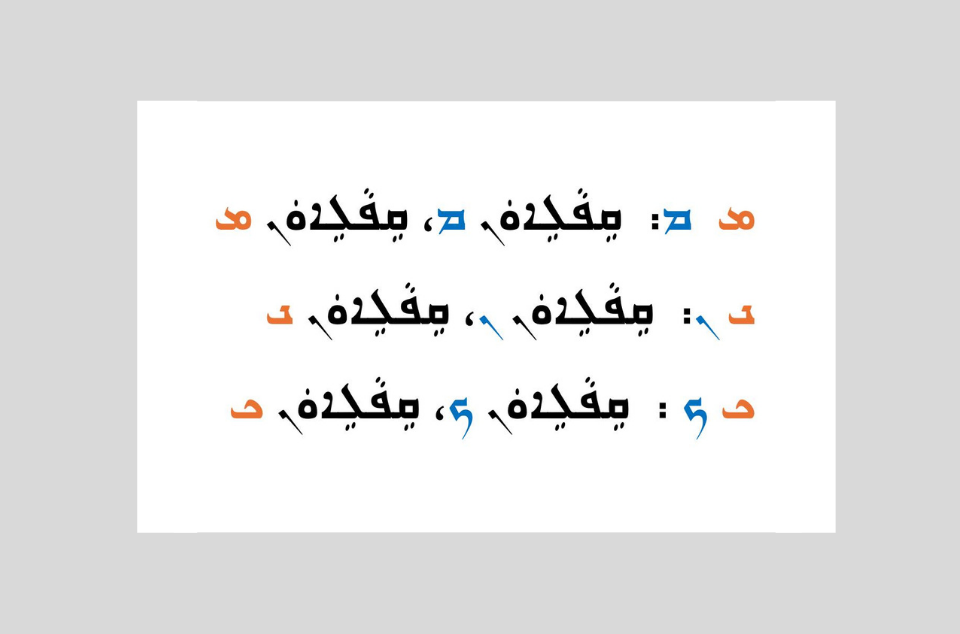 These font include advanced OpenType features that enable access to stylistic sets and alternate glyph variants in supported desktop publishing and word-processing applications, including Adobe InDesign, Microsoft Word, and LibreOffice Writer. These features provide fine-grained typographic control and support script-specific variants, such as alternate taw–alap forms in Syriac. Where supported by the application, stylistic alternates can be selected via the OpenType or font feature controls, allowing users to apply contextual, historical, or orthographic variants appropriate to editorial or scholarly requirements.